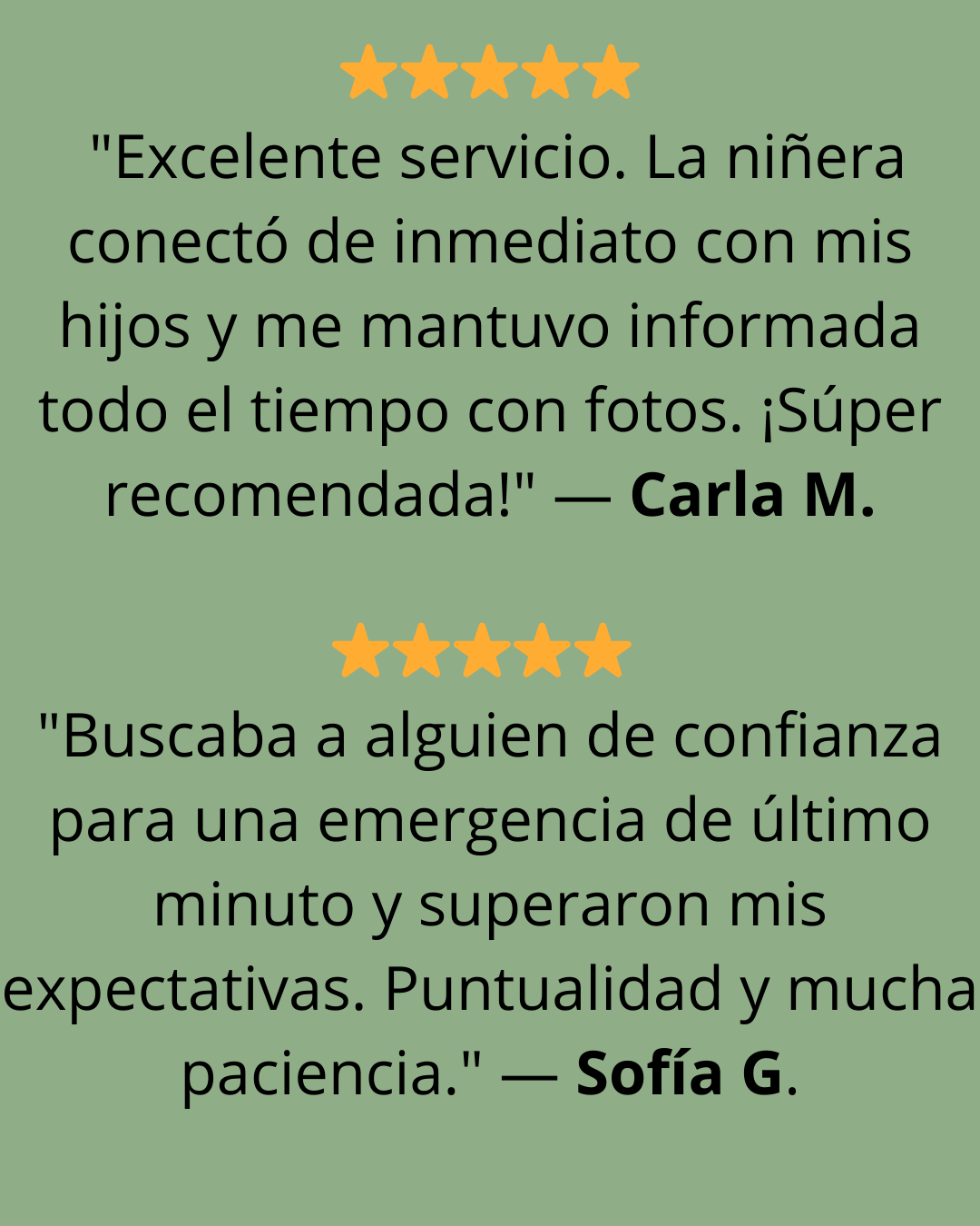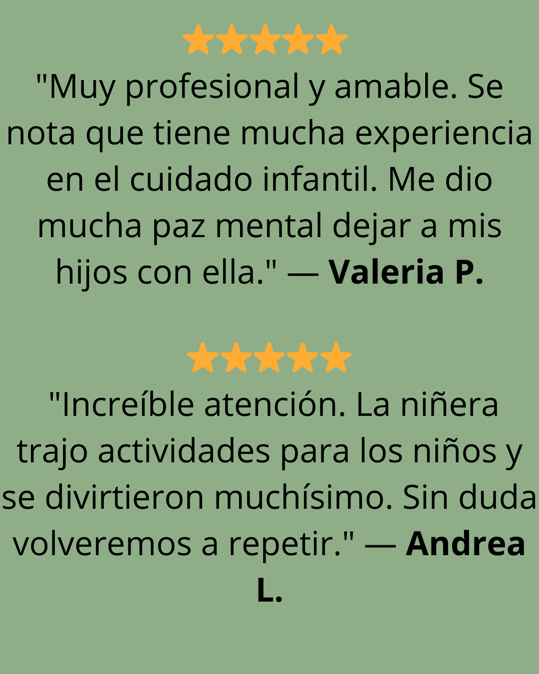 Nuestras niñeras están capacitadas y seleccionadas cuidadosamente para ofrecer una atención personalizada y amorosa.